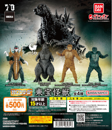 株式会社バンダイ ベンダー事業部(本社:東京都台東区)は、人気東宝怪獣シリーズより待望のHGフィギュアシリーズ「HG 東宝怪獣」(1回500円・税10%込、全4種)を2023年12月第3週から順次、全国のガシャポンバンダイオフィシャルショップ、玩具売り場・量販店・家電店などに設置されたカプセルトイ自販機にて発売いたします。