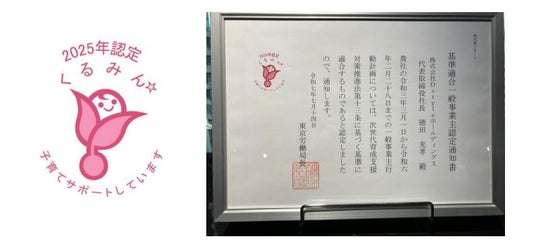 株式会社Dstyleホールディングス(東京都渋谷区、代表取締役会長兼社長:徳田充孝)では 次世代育成支援対策推進法に基づき、子育てサポート企業として一定の基準を満たしたことにより、2025年7月14日付で厚生労働大臣より「くるみん認定」を取得しましたので、お知らせいたします。