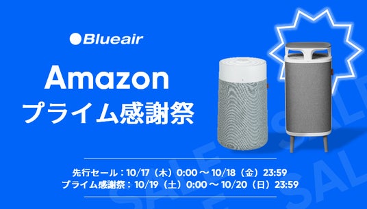 スウェーデン発の高性能空気清浄機「Blueair(ブルーエア)」の日本総代理店、セールス・オンデマンド株式会社(本社:東京都品川区 / 代表取締役社長 室崎 肇:以下、セールス・オンデマンド)は、2024年10月17日(木)0時~10月18日(金)23時59分までの先行セール、及び、2024年10月19日(土)0時~10月20日(日)23時59分までの間、Amazonで開催される「プライム感謝祭」にて、世界基準*1 No.1*2 の空気清浄機ブルーエアがお得になるビッグセールを実施いたします。