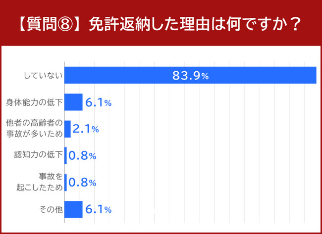 免許返納の理由は「身体能力の低下」が6.1%で1位