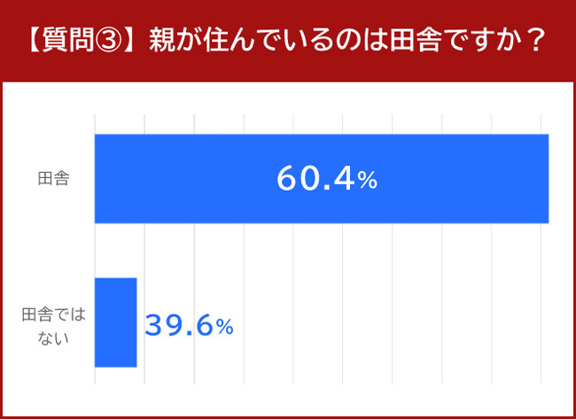 親が住んでいる場所は60.4%が「田舎」と回答