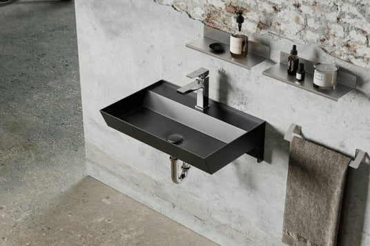 肉厚なステンレスを使用した洗面ボウル。本体と壁固定用のブラケットを一体化させ、施工性に配慮しました。