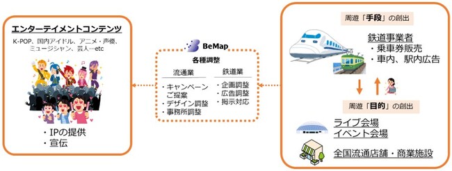 当社は、これまで鉄道事業者、コンビニエンスストア、スーパーマーケット、ドラッグストアなどの流通事業者に対し、K-POP、アイドル、アニメや声優、さらには芸人、プロレスラー、占い師、ミュージシャン等に至る、数々のコンテンツを活用した事業やサービスの提案、展開を行ってきました。これらによって、当社のスローガンである「もっと楽しく、人を動かす」取り組みを進め、大きな成果を上げつつあります。