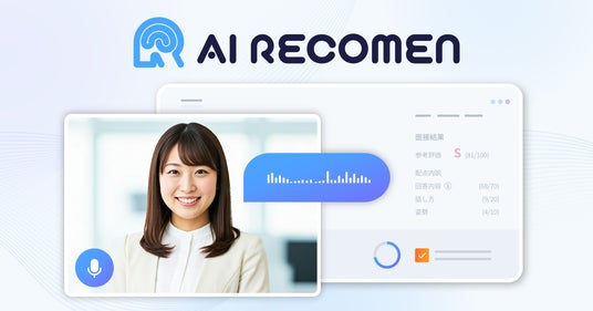AI RECOMENは、求職者がスマートフォンやPCから24時間いつでも面接を受けられ、AIが表情・音声・回答内容を解析し、面接評価レポートを自動作成するAI面接ツールです。