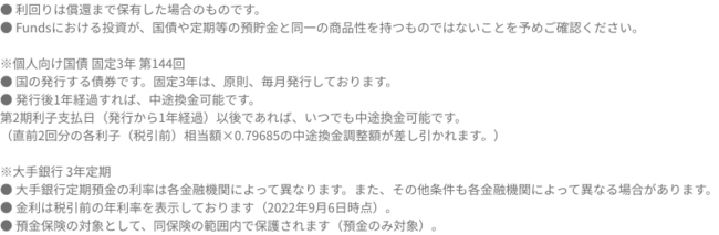(*)Fundsにおける利回り1~2%台は2019年1月~2022年7月現在の平均利回りの実績を掲載。以下、本リリースの記載においても同様