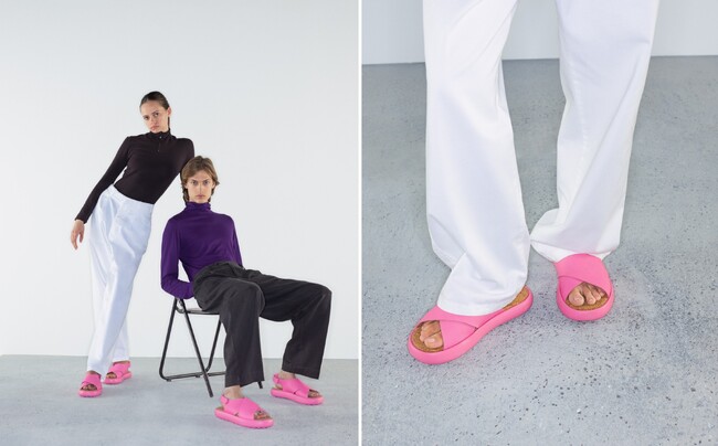 デビューコレクションは、ベーシックなクロスサンダルとスポーティーなマルチストラップサンダルをシーズナルカラーで展開します。