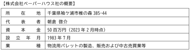 投資先の株式会社ペーパーハウス社は、1983年に紙の加工・販売業者として設立され、2005年以降は物流用パレットに係るソリューション提供(パレットの選別・保管・管理・洗浄・修繕業務等の受託)を主業としてきました。同社は、このたびの資金調達によって、袖ケ浦事業所に第二拠点新設等の設備投資を行い、近時増加している不要パレットの引き取りニーズへの対応強化やパレットリサイクル事業への参入を計画しています。