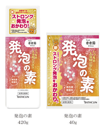 株式会社バスクリン(本社:東京都千代田区 社長:三枚堂正悟)は、いつものお風呂を炭酸泡*1のお風呂に変えて楽しめる入浴料「発泡の素」を、発泡力を強化*2させ、8月22日(火曜日)にリニューアル発売いたします。炭酸泡*1が物足りないときの追い炭酸泡*1.3.4や、お気に入りの入浴料*3を炭酸泡*1のお風呂に変えたいときに、と様々なお風呂のシーンでお楽しみいただけます。