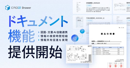 製造業AIデータプラットフォームCADDiを提供するキャディ株式会社(本社:東京都台東区、代表取締役:加藤 勇志郎、以下キャディ)は、製造業データ活用クラウドCADDi Drawerの新機能として、「ドキュメント機能」の提供開始をお知らせします。