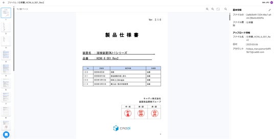各ドキュメントの検索やサムネイルでの閲覧が可能です。複数ページのファイルの場合、サムネイルには1ページ目が表示されます。