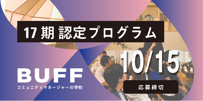 BUFF コミュニティマネージャー の学校( https://buff-community.jp/ )を運営する株式会社qutori(本社:東京都渋谷区 代表取締役:加藤翼)は、プロフェッショナルなコミュニティマネージャーを育成する、 第17期の認定プログラムの募集を開始しました。募集に際し、第16期生が3ヶ月間の受講成果をプレゼンする最終審査会や、応募前にプログラムの雰囲気を味わえる入門オンライン講座も合わせて実施します。