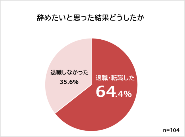 辞めたくなって実際に退職した人は64.4%です。