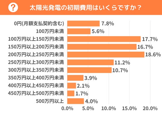 ・太陽光発電の初期費用として200万円以上250万円未満が18.6%で最も多かった