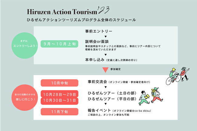・1.事前交流会 2.ひるぜん現地ツアー 3.ツアー報告会、を一連のプログラムの全てに何らかの形で参加いただける方(個別事由は応相談)