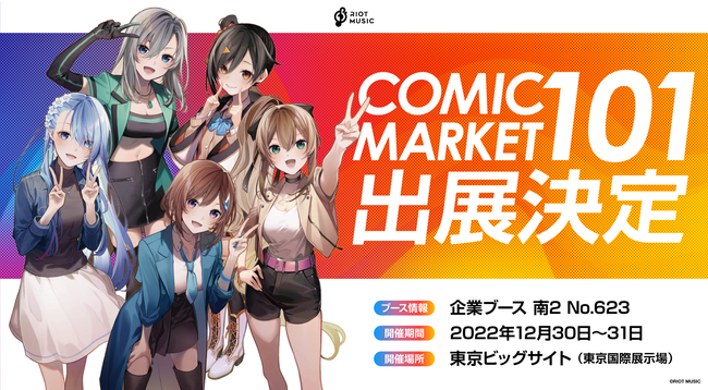 株式会社Brave group(本社:東京都港区、代表取締役:野口圭登、以下「Brave group」)は、子会社であるSuperYellow株式会社(本社:東京都港区、代表取締役:野口圭登)が運営するバーチャルミュージックプロダクション「RIOT MUSIC」のコミックマーケット101への出展が決定した事をお知らせいたします。