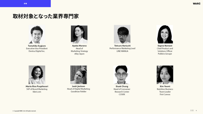 本白書は、以下4つの章で構成され、各章のテーマを調査結果や成功事例とともに解説し、また、電通デジタル、eBay Japan、LINEマンガを始め、国内外の各業界の専門家による見解についてもご紹介しています。