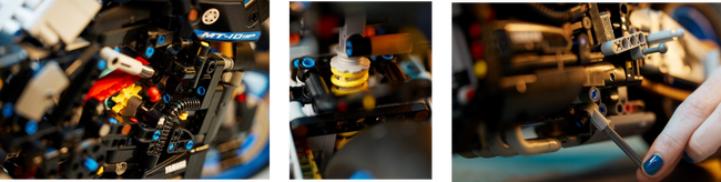 さらに、このモデルは、あらゆる面で乗車体験を忠実に再現するように作られています。心臓部である水冷・DOHCの4気筒エンジンやギヤボックスなど、ヤマハのモーターサイクルの本格的なディテールまでこだわりました。加えて、ギアなどの仕組みの理解を促すリアルな動きといった精密さにより、組み立てる人々を魅了します。