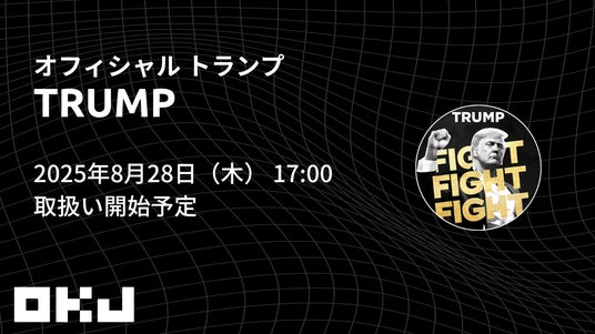 当社は、OKJ(暗号資産取引所)にて、『オフィシャル トランプ(TRUMP)』を、2025年8月28日(木)に取扱い開始することをお知らせいたします。これにより、OKJは、47種類の暗号資産を取扱うことになります。