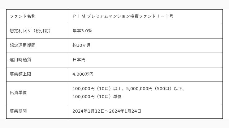「未来をわかちあう投資」を提供する「Funvest(ファンベスト)」(以下、Funvest)は、「PIM プレミアムマンション投資ファンド1-1号」(以下、本ファンド)の募集を1/12より開始しますので、お知らせいたします。