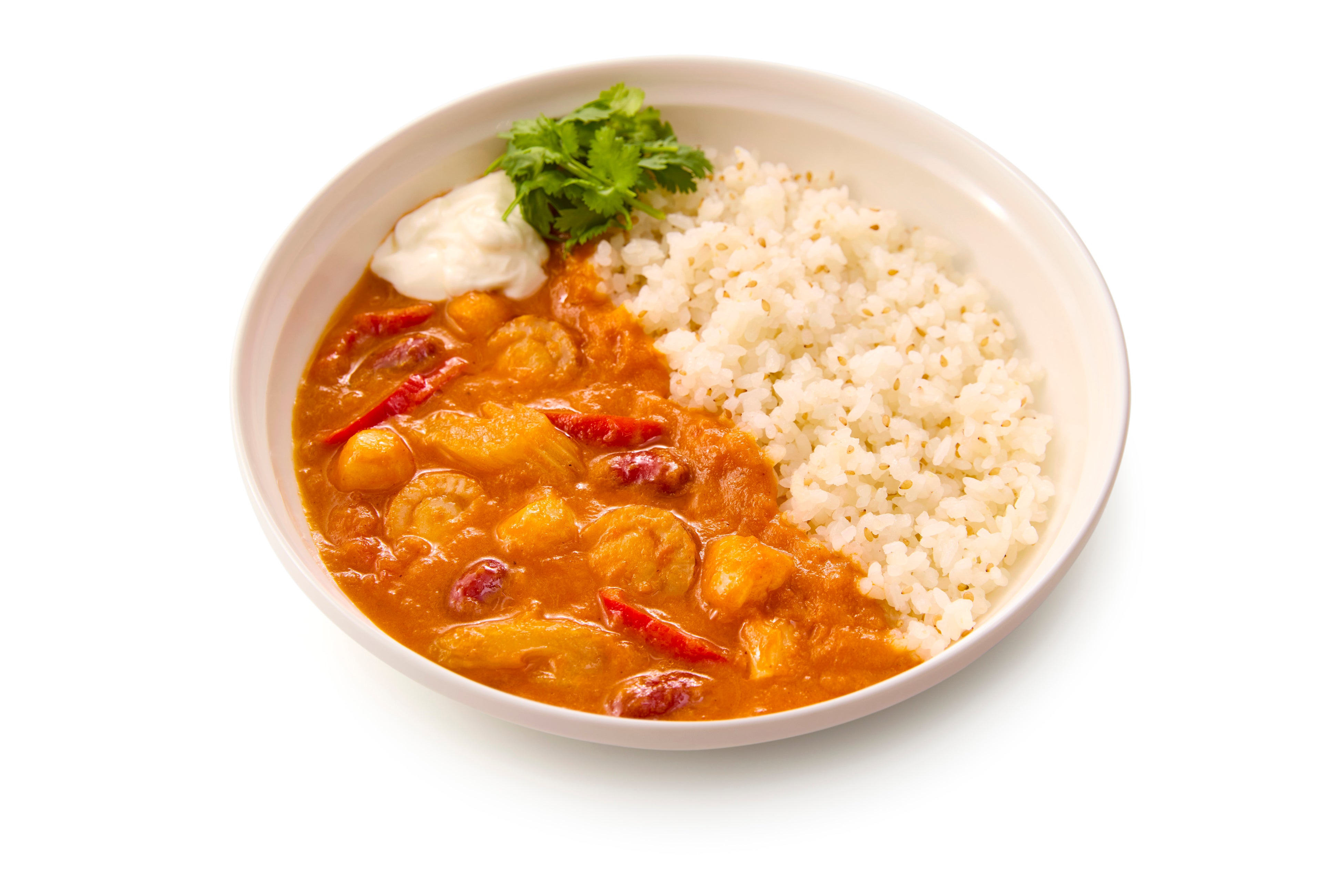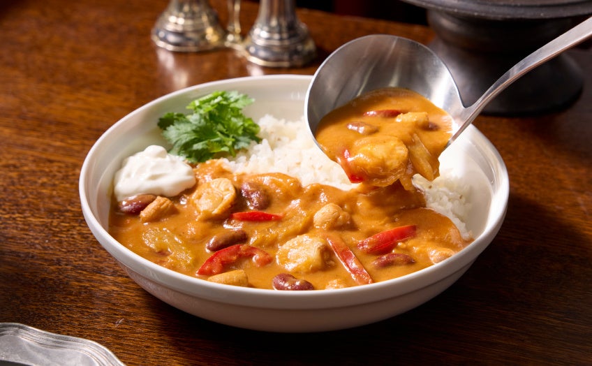「フリカッセ」は食材をクリームで煮込んだフランスの家庭料理。そのフリカッセを、Soup Stock Tokyoならではのオマール海老ソースと、アメリカ南部のケイジャン料理特有のスパイスでアレンジした一皿です。オマール海老の旨味の中にごろごろとした帆立の存在感と、ケイジャン料理の特徴であるスパイスの中に、ホットソースの辛酸っぱいアクセント。お皿に添えた軽やかな酸味のサワーソースを加えていただくことで、爽やかな味わいに味を変えながら食べすすめていただくことができます。