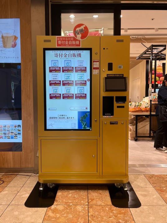 「ふるさと納税自動販売機」は、グローキーアップ株式会社が開発 (特許保有)した、旅先などで手軽にふるさと納税の寄付手続き・支払いのできる自動販売機で、ふるさと納税にかかる時間を最短2分と大幅に短縮可能とし、デジタル庁によりデジタル実装の優良事例として紹介されています。当社は、震災支援の一助となるべく、あらゆる支援活動の可能性に着目し、同自販機の取り扱いを決めました。羽田空港での当該自動販売機設置開始時は、返礼品なしのふるさと納税(寄付のみ)とし、将来的には、被災地自治体である奥能登の水産加工品や宿泊利用券などの返礼品に対応していく予定です。