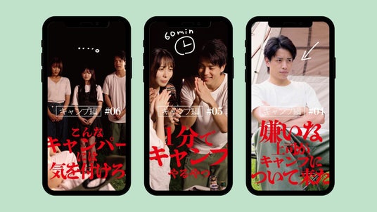 「体育会系過ぎるスケジュール」「火を見てるとどうでもよくなる」など、ショートドラマでキャンプの楽しさをお届け