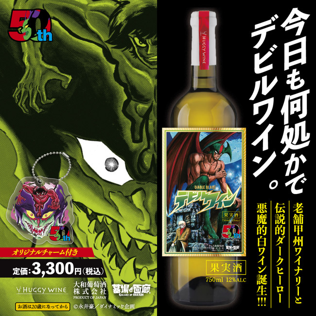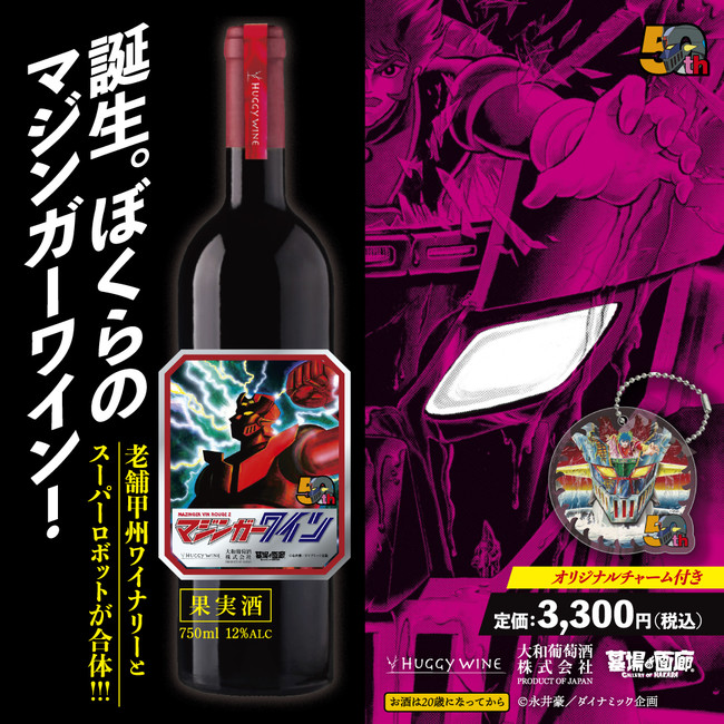 永井豪による傑作『デビルマン』と『マジンガーZ』誕生50周年を記念して、甲州の老舗ワイナリー『大和葡萄酒』との豪華なコラボレーションワインが実現!今回販売されるのは『デビルマン』をモチーフとした狂乱の白ワインと、『マジンガーZ』をモチーフとした鋼鉄の赤ワインの2種。それぞれ日本を代表する逸品同士が織り成す味わいは神か?悪魔か?それとも…!? インパクトあるオリジナルラベルのデザインは、贈答用にも喜ばれる、大人のプレゼントにも最適。互いに歴史を感じさせる重厚な味わいをお楽しみください。