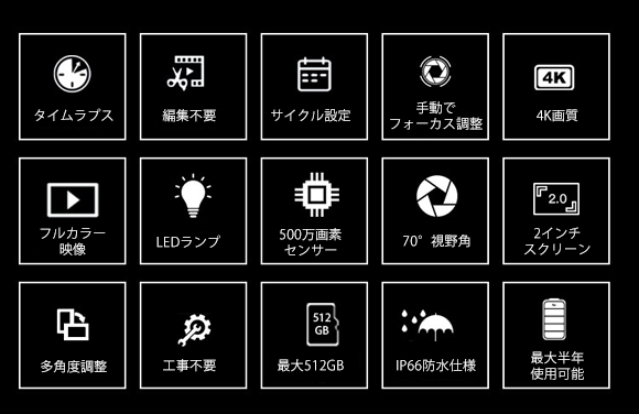 【4K高画質・SONY製CMOSセンサー・最大180日稼働・IP66防水】