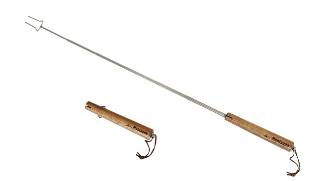 特徴:ソーセージやお肉にそのままブスッ!BBQなどの使用シーンに合わせて、長さを使い分けできる伸縮自在のアウトドアフォーク。焼き網や鉄板にのせた食材を、熱々のままワイルドに食べれます。先端は二股式で食材をしっかりと固定。BBQ以外にも、焼きマシュマロやチーズフォンデュなど、味覚を存分に楽しめるアイテムです。