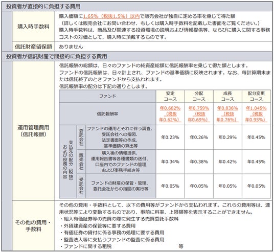 上記の費用の合計額については、投資家の皆様がファンドを保有される期間等に応じて異なりますので、表示することができません。※詳しくは、投資信託説明書(交付目論見書)の「ファンドの費用・税金」をご覧ください。