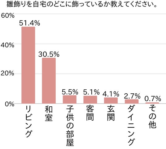アンケートでは次に、雛飾りを自宅のどこに飾っているか尋ねました。