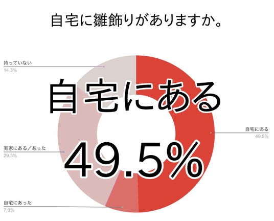 今回のアンケートでは、現在自宅に雛飾りがあると答えた方は約半数(49.5%)でした。