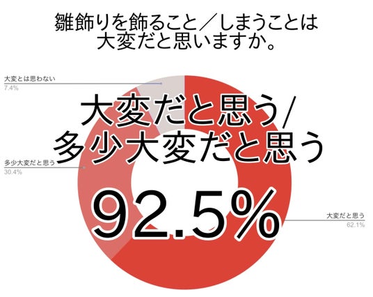 アンケートでは次に、雛飾りを飾ること/しまうことは大変だと思うか尋ねました。
