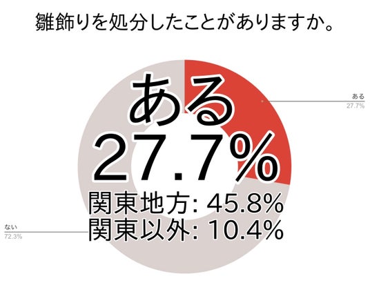 雛飾りを処分した経験がある方は関東約5割・関東以外で約1割