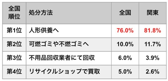 全国・関東とも人形供養に出した方が最も多く約8割でした。