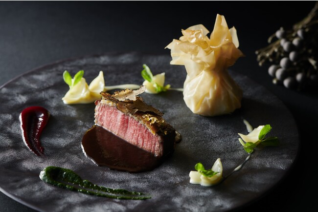 肉料理:北海道和牛 ロティ フレッシュトリュフ ラぺ フォアグラ 百合根 パートフィロ包み
