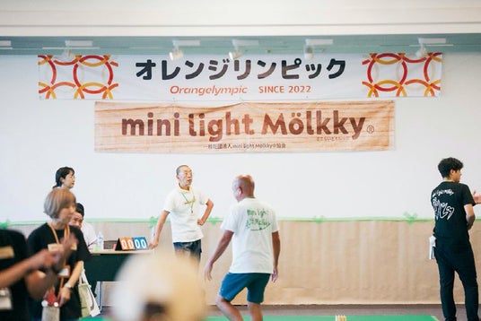 その代表的な取り組みの一つが、フィンランド発祥のモルックを 1/5に軽量化したユニバーサルスポーツ「ミニらいとモルック(R)」を活用した活動です。ニヨ活は、このスポーツを用いて数百名規模の大型スポーツ大会「オレンジリンピック」を定期的に開催しています。 2歳の子どもから90歳代の高齢者まで、幅広い世代が参加できるのが特徴です。一般の参加者だけでなく、障がいのある方、介護支援が必要な方、そして認知症のある方も参加することで、多世代・多様な生き方を持つ人々との自然な交流が生まれています。