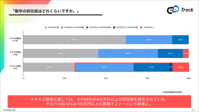 【4】スキル上級者の68%は、初任給400万円以上。(そのうち約10%は700万円超え)