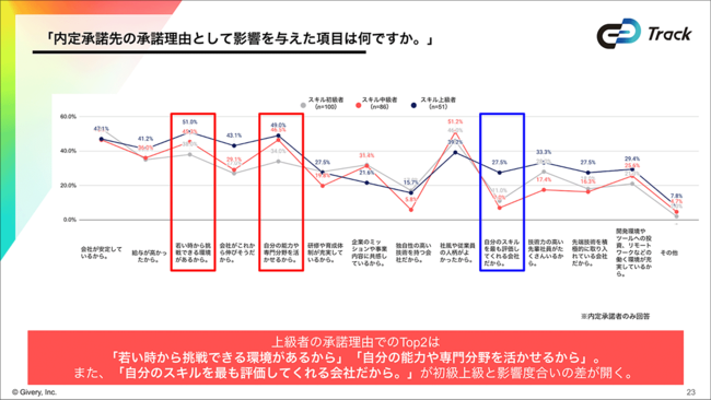 【3】スキル上級者の49%は、内定承諾の理由を「自分の能力や専門分野を活かせるから」と回答。