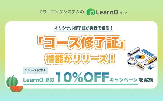 「コース修了証」のリリースを記念し、LearnOの利用料が10%OFFになる「10%OFFキャンペーン」を開催いたします。