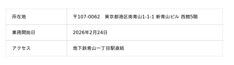 本社所在地:東京都港区南青山1-1-1 新青山ビル 西館5階