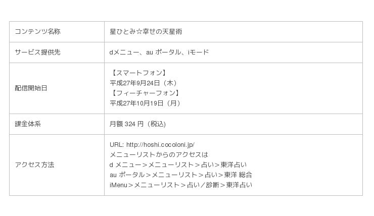 株式会社ザッパラス(本社:東京都渋谷区、代表取締役会長兼社長:玉置 真理)は、星ひとみが監修する占いサイト「星ひとみ☆幸せの天星術」を、平成27年9月24日(木)よりスマートフォンにて提供開始いたします。