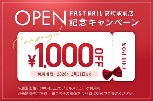 オープンを記念して、「FASTNAIL 高崎駅前店」限定で《1,000円OFFキャンペーン》を実施いたします。