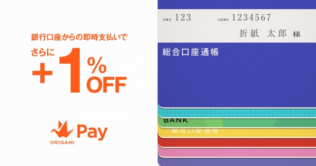 株式会社Origami(本社:東京都港区、代表取締役社長:康井義貴、以下 Origami)は、2019年2月7日(木)より、Origamiアプリでお支払い方法として銀行口座を登録した方が即時支払する際に、さらに1%割引となるキャンペーンを開始します。
