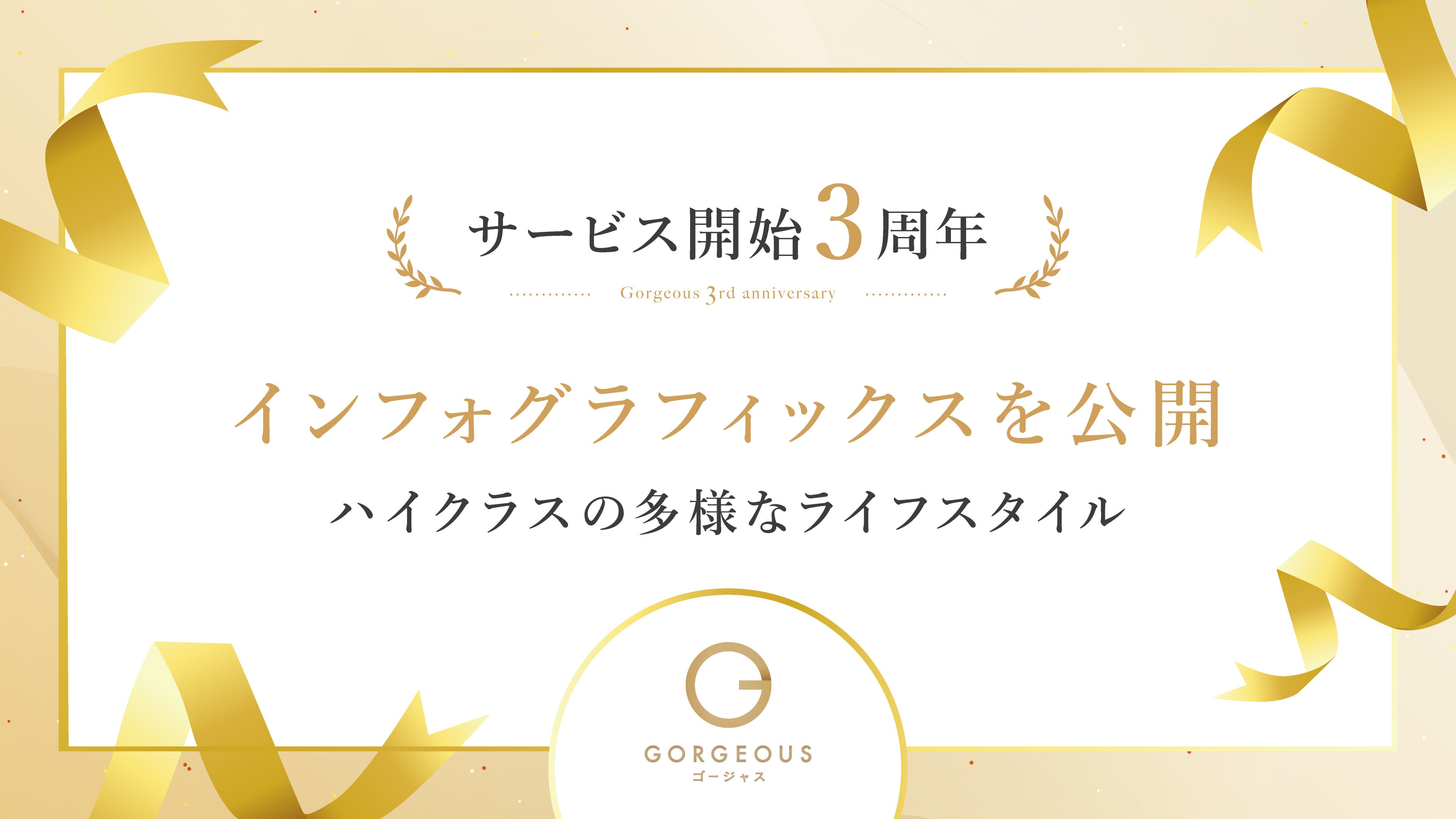 リンク株式会社(アイザックグループ/本社: 東京都渋谷区/代表取締役CEO: 白井 僚)が運営する、完全審査制の恋活・婚活マッチングアプリ「ゴージャス」は、2025年10月23日でサービス開始3周年を迎えます。これを記念して、ゴージャス内の傾向を振り返るインフォグラフィックスを公開しました。