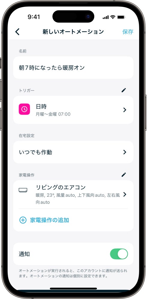 「朝7時になったら暖房をON」のオートメーションを使えば、起床した時にはすでに暖かい環境に。寒くて布団から出られない冬はもう今年で終わりにしましょう!