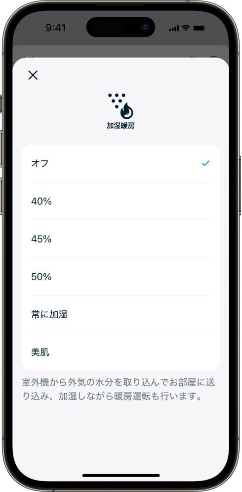 ダイキン製エアコンの加湿暖房で快適にNature Remoシリーズはダイキン製エアコンの6つの固有機能に対応しており、「加湿暖房」にも対応しています。加湿暖房は、外気の水分を取り込んで部屋を加湿し、設定した湿度にします。