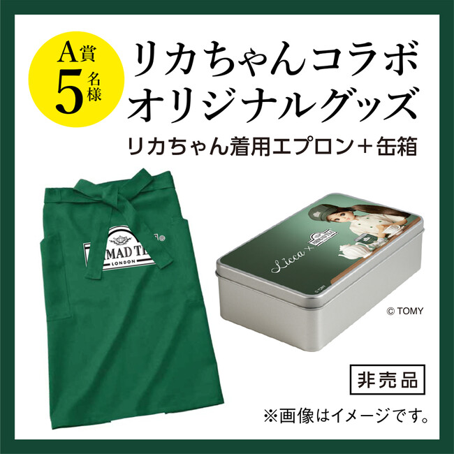 A賞:リカちゃんコラボオリジナルグッズ《リカちゃんお揃いエプロン(おとな用)&オリジナル缶箱》抽選で5名様