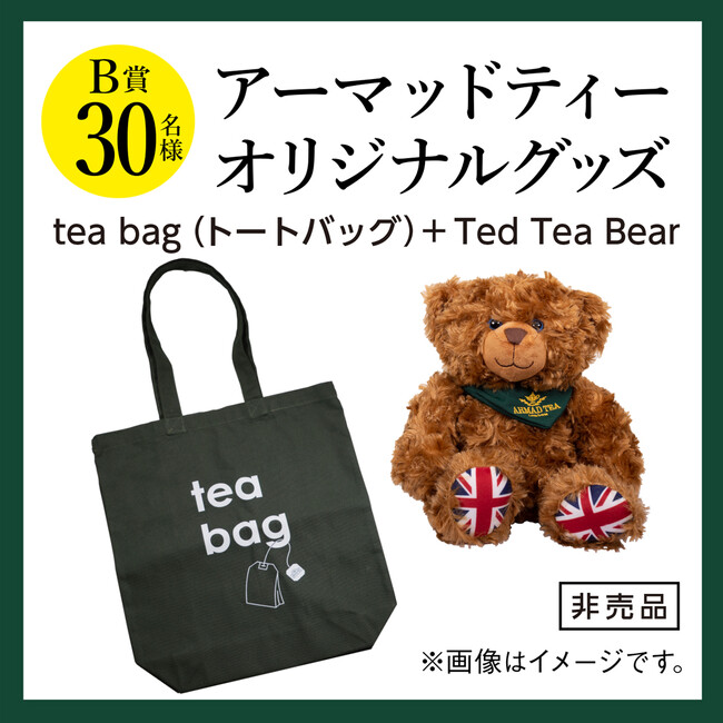 B賞:アーマッドティーオリジナルグッズ《トートバッグ(tea bag)&ぬいぐるみ(Ted Tea Bear)》抽選で30名様