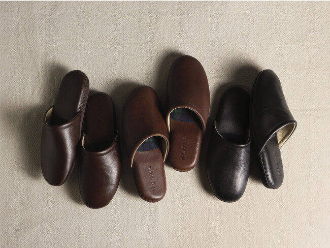 ルームシューズは本来靴に使われる革素材の持つ魅力や特徴を活かして贅沢に仕立てられています。天然素材ならではの一点ごとに異なる個性と魅力。そのオンリーワンをお楽しみください。
